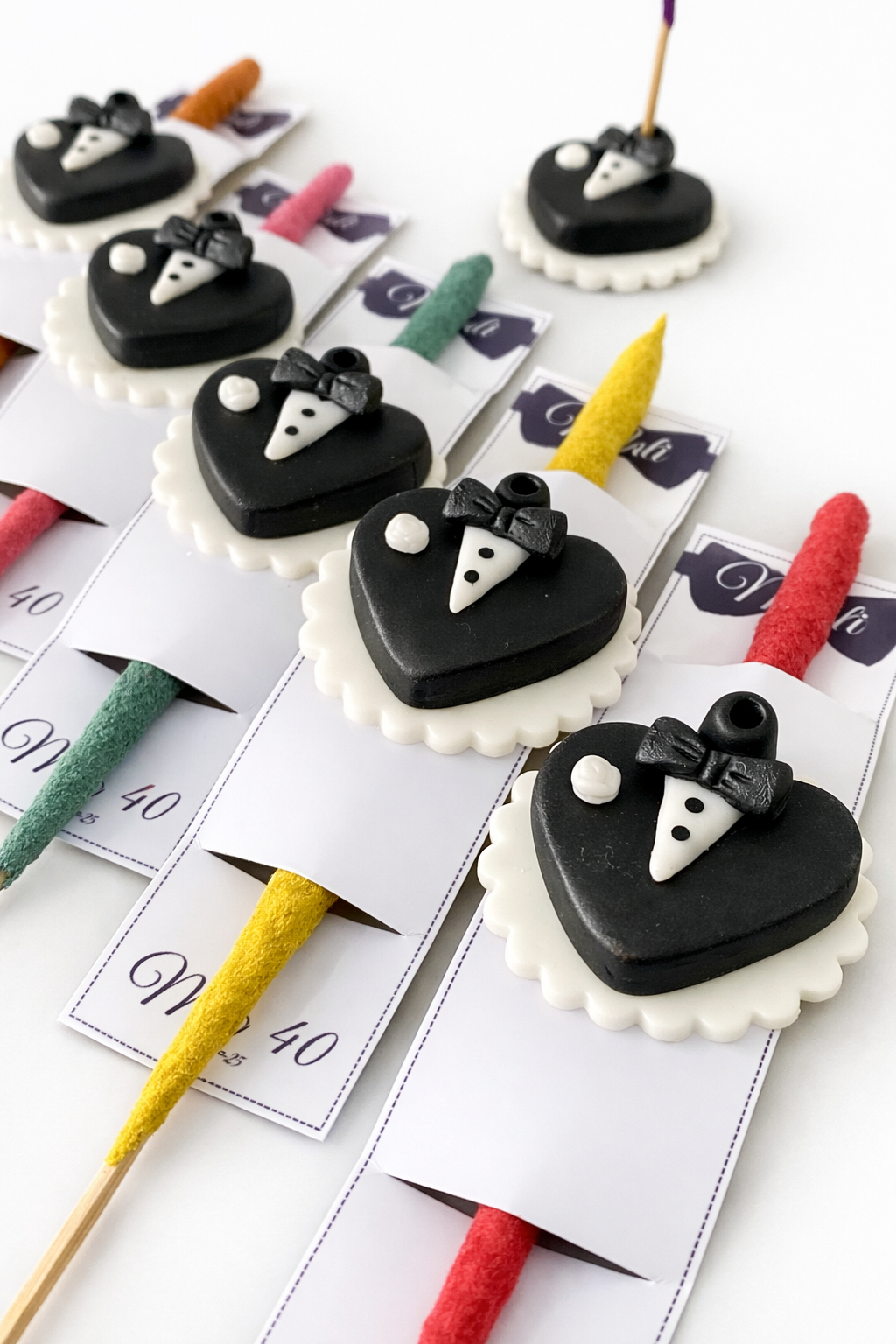 Este elegante porta sahumerios artesanal para hombre está elaborado cuidadosamente en porcelana frÃa, modelado a mano con un diseño inspirado en un traje clásico con moño, ideal para souvenirs ,regalar o decorar cualquier espacio con estilo.