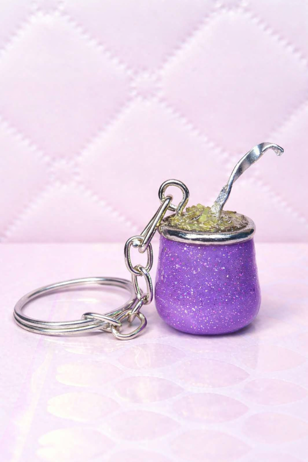 Cada llavero representa un mate en miniatura con su bombilla, elaborado en porcelana fría, resinado para mayor brillo y durabilidad, y con un detalle súper especial: ¡yerba real!, que le da un acabado auténtico y original.